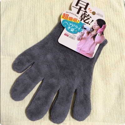 見た目はただの手袋。 でもコレをはめて髪を乾かすことによって 大幅に時間が短縮できるのです!